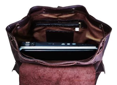 Mochila Portanotebook -Cuero Engrasado 100% PREMIUM VINTAGE- Está totalmente hecha a mano con cuero de muy alta calidad Este cuero es suave, pero fuerte, engrasado, con un gran pull-up. Este tipo de cuero envejece sorprendentemente bien, ya que está impregnado de aceites que evitan el secado. Interior totalmente forrado 100% algodón PORTANOTEBOOK acolchado Bolsillo interno con cierre y porta celu Cierre de tapa con CERRADURA, seguras y practicas de abrir 2 bolsillos externos laterales con broche iman 1 bolsillo externo frontal con cerradura Herrajes en bronce viejo Correas de algodon tejido totalmente regulable y super resistentes Alto 40cm x Ancho 35cm x Fuelle 17cm