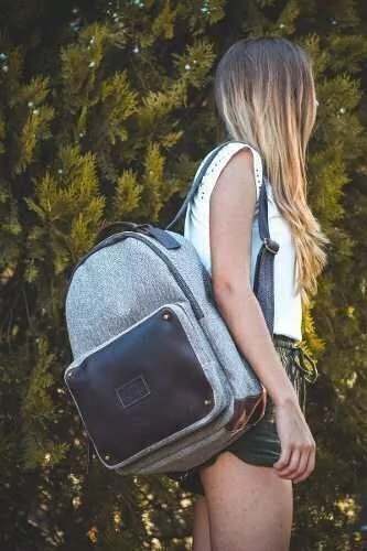 CUERO ENGRASADO Y LONA CANVAS Compartimiento principal totalmente forrado en su interior Bolsillo interno con cierre Bolsillo externo amplio con cierre metalico bronce Manija corta de cuero doble reforzada Cierre general con cierre metalico bronce Herrajes en bronce viejo Correas de algodon tejido totalmente regulable y super resistentes Alto 42cm x Largo 30cm x Ancho 19cm Color: LONA MARRON CLARO, MARRON OSCURO, AZUL, NEGRO, VERDE CALIDAD PREMIUM
